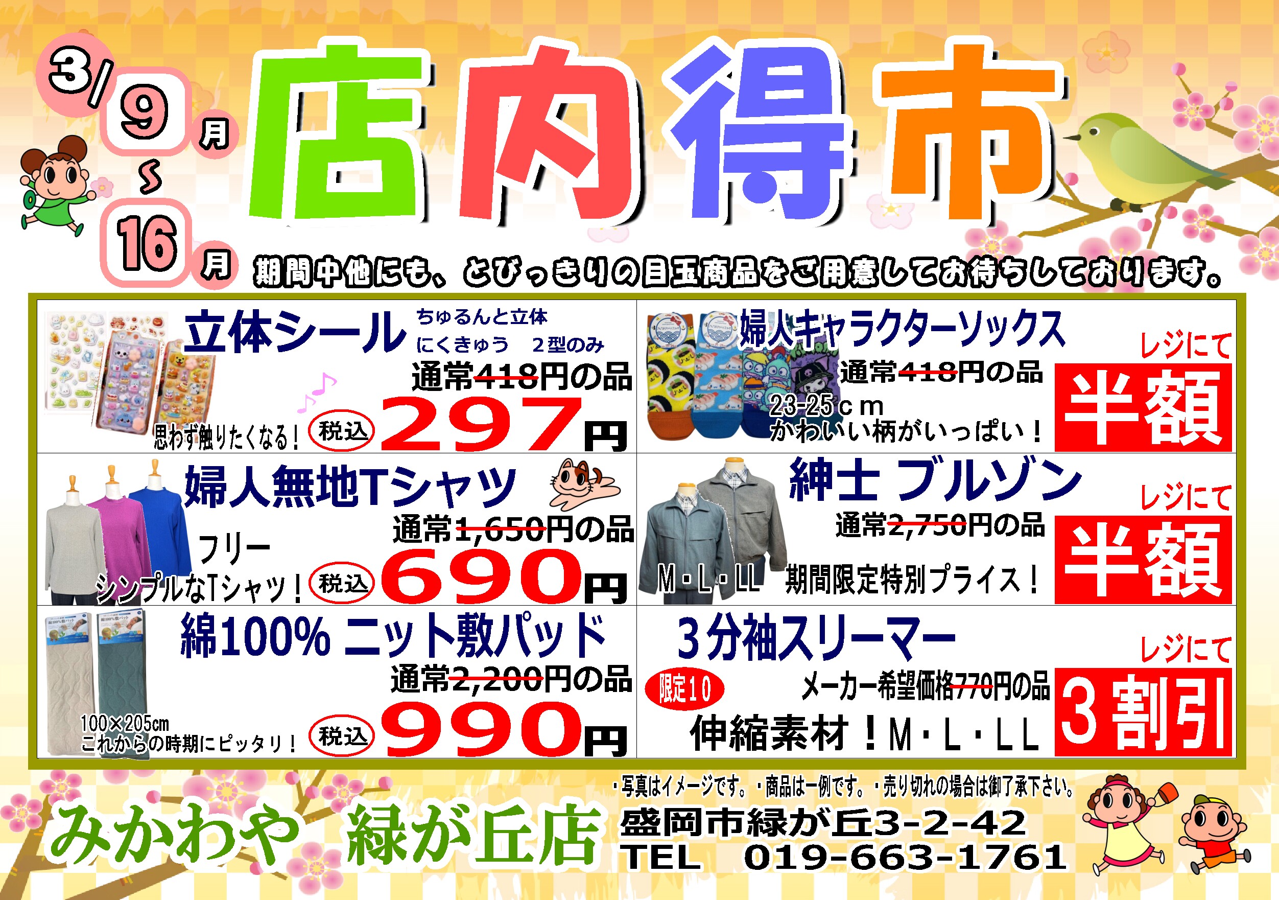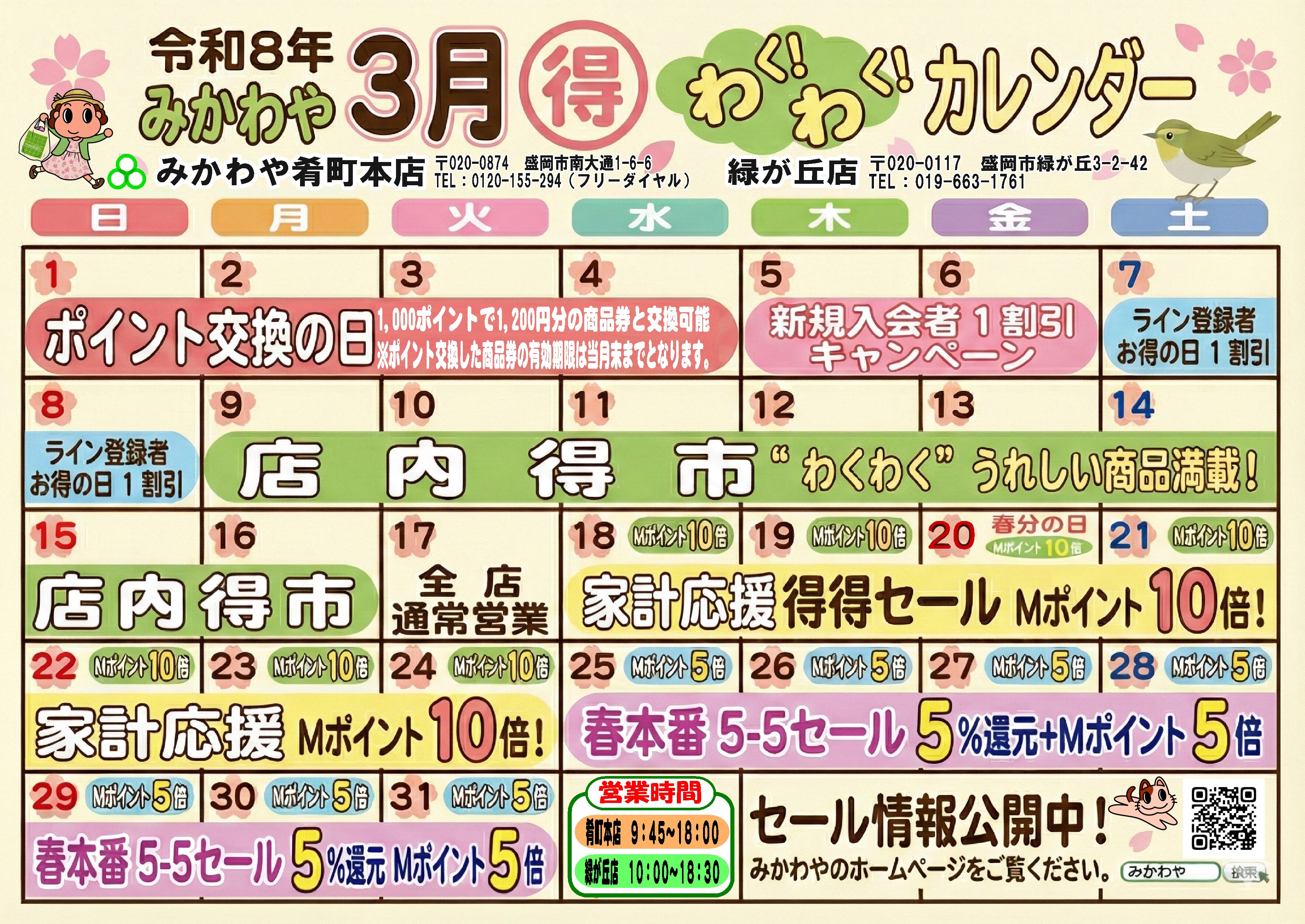 2026年3月のカレンダー店内得市チラシを掲載いたしました。